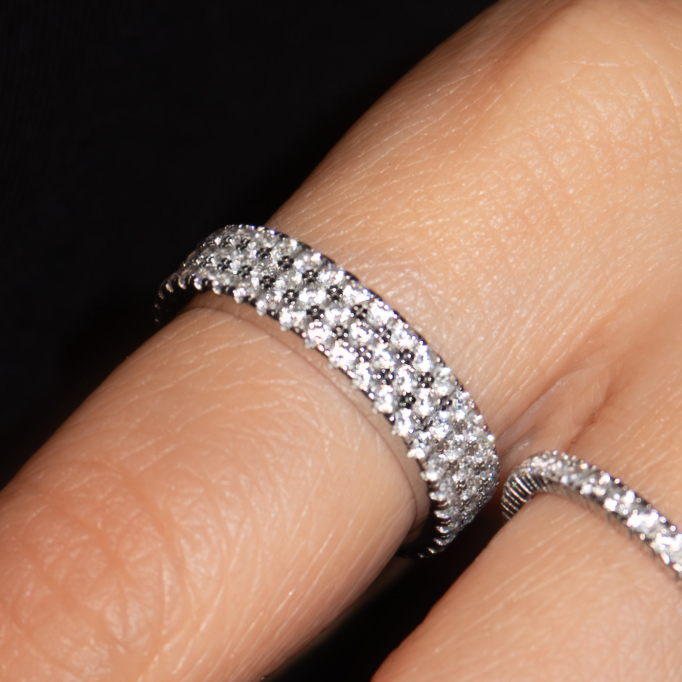 Introducing the Grace – a bold, layered design that makes a statement without the need for multiple rings. Perfect for those who love the look of layering but prefer simplicity, this piece shines with its radiant stone-covered layers, adding effortless elegance to any look