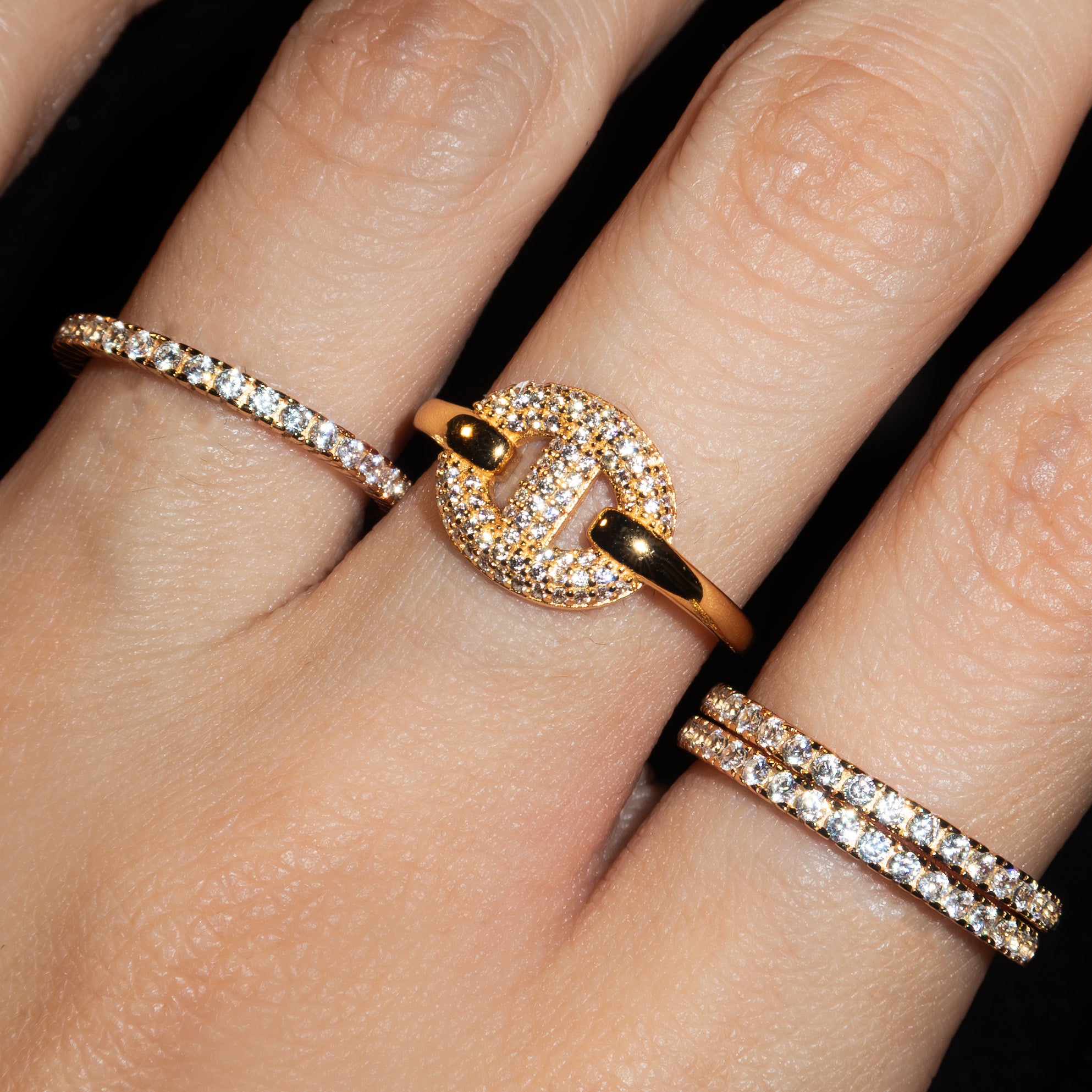 Shine bright with our Chantal gold vermeil ring, featuring a stunning pavé of CZ stones. This chic and trendy piece adds the perfect touch of glam to any look, from everyday outfits to special occasions.