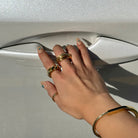 MEET OUR CROISSANT RING - INSPIRED FROM FRENCH PASTRY, YET STANDS OUT WITH ITS UNIQUE TWIST. UNLIKE THE CROISSANT RINGS YOU MAY BE FAMILIAR WITH, OUR CROISSANT IS BEAUTIFULLY CRAFTED INSIDE OUT FROM HIGH-QUALITY POLISHED GOLD FOR A LUXURIOUS FINISH.