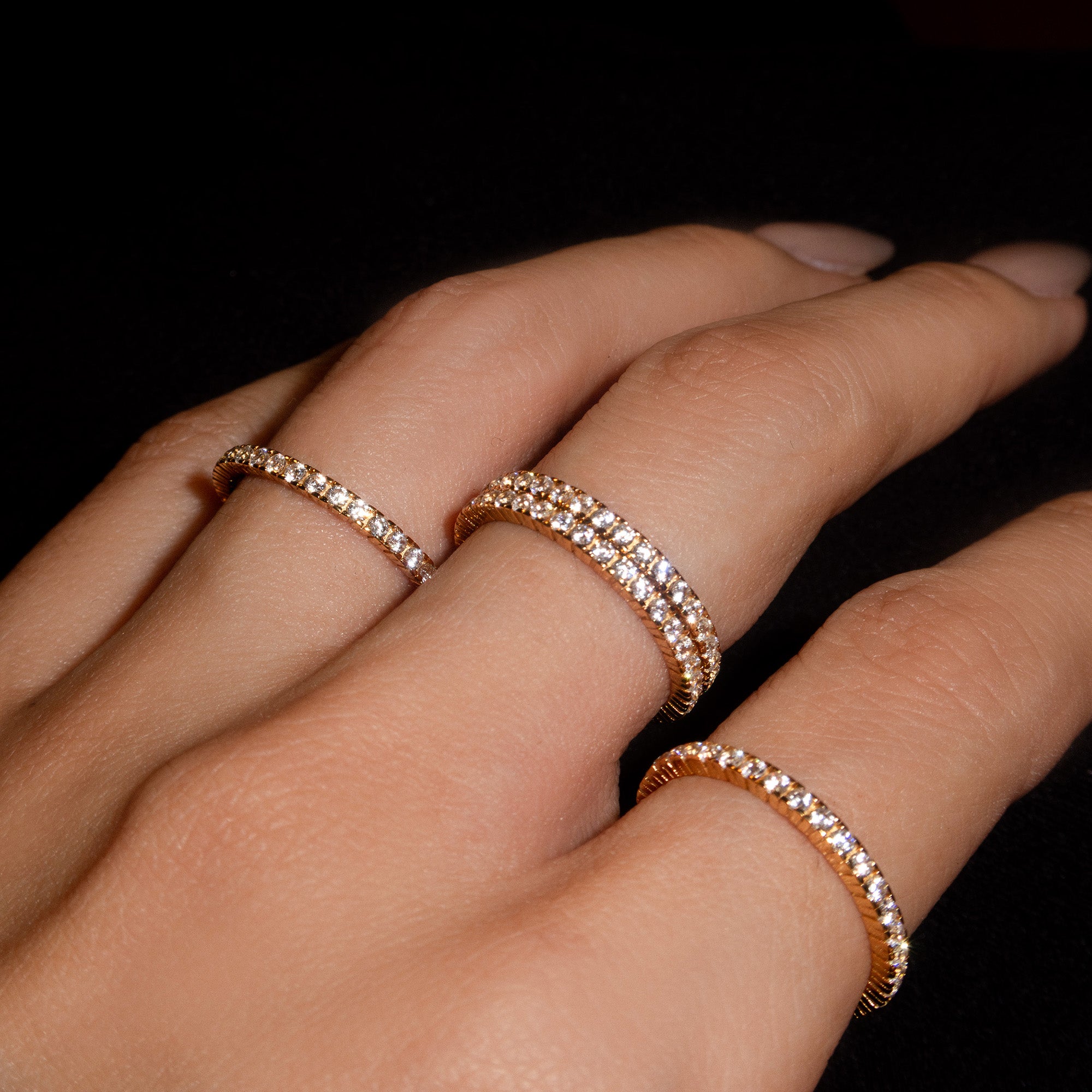 Our stackable ring is perfect for layering with others, letting you create a personalized look. It's also compatible with our ring carabiner for endless mix-and-match possibilities. For a trendy twist, size up and wear it as a thumb ring!