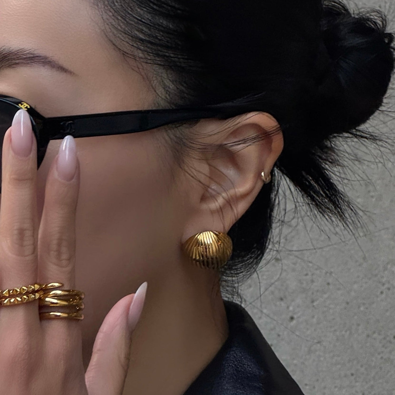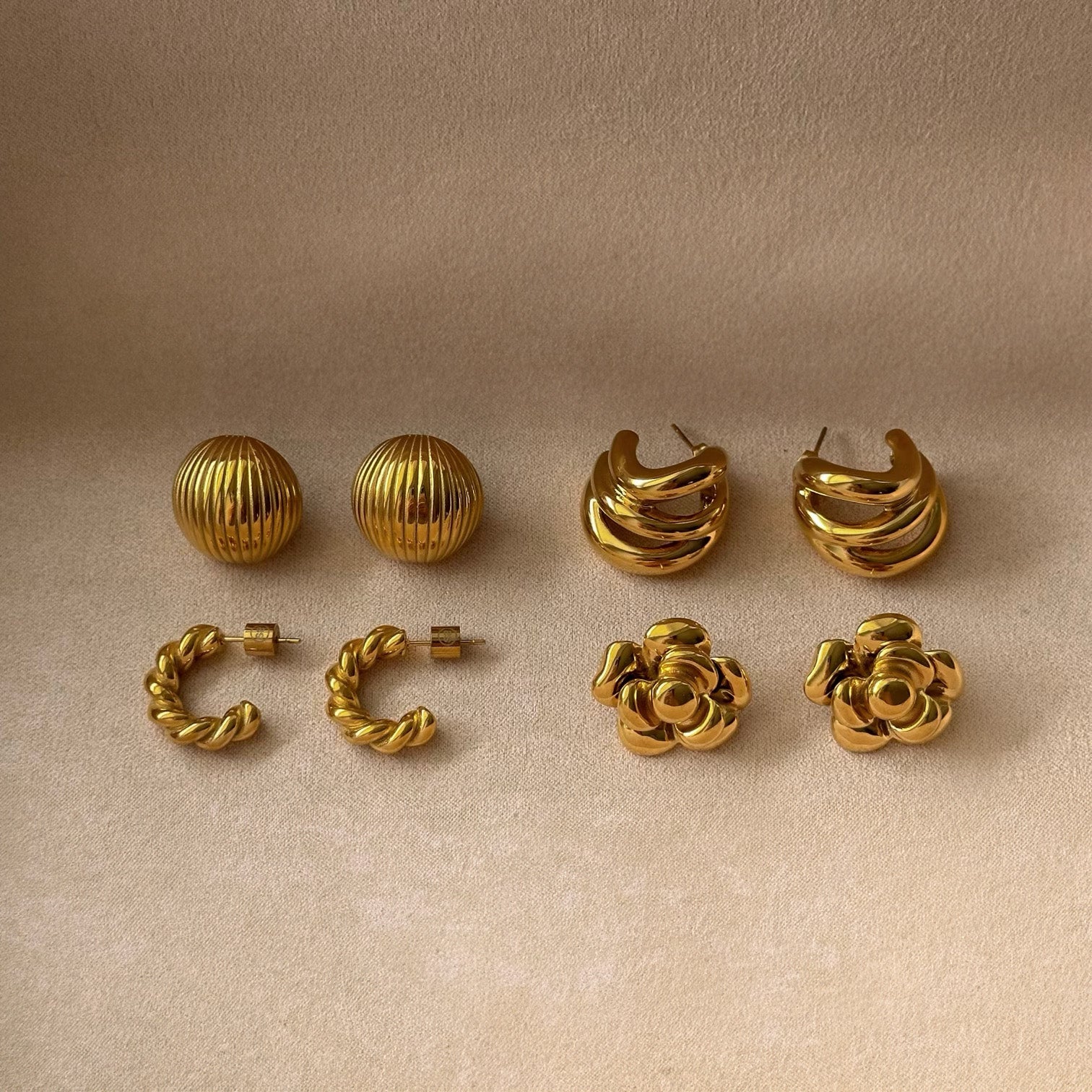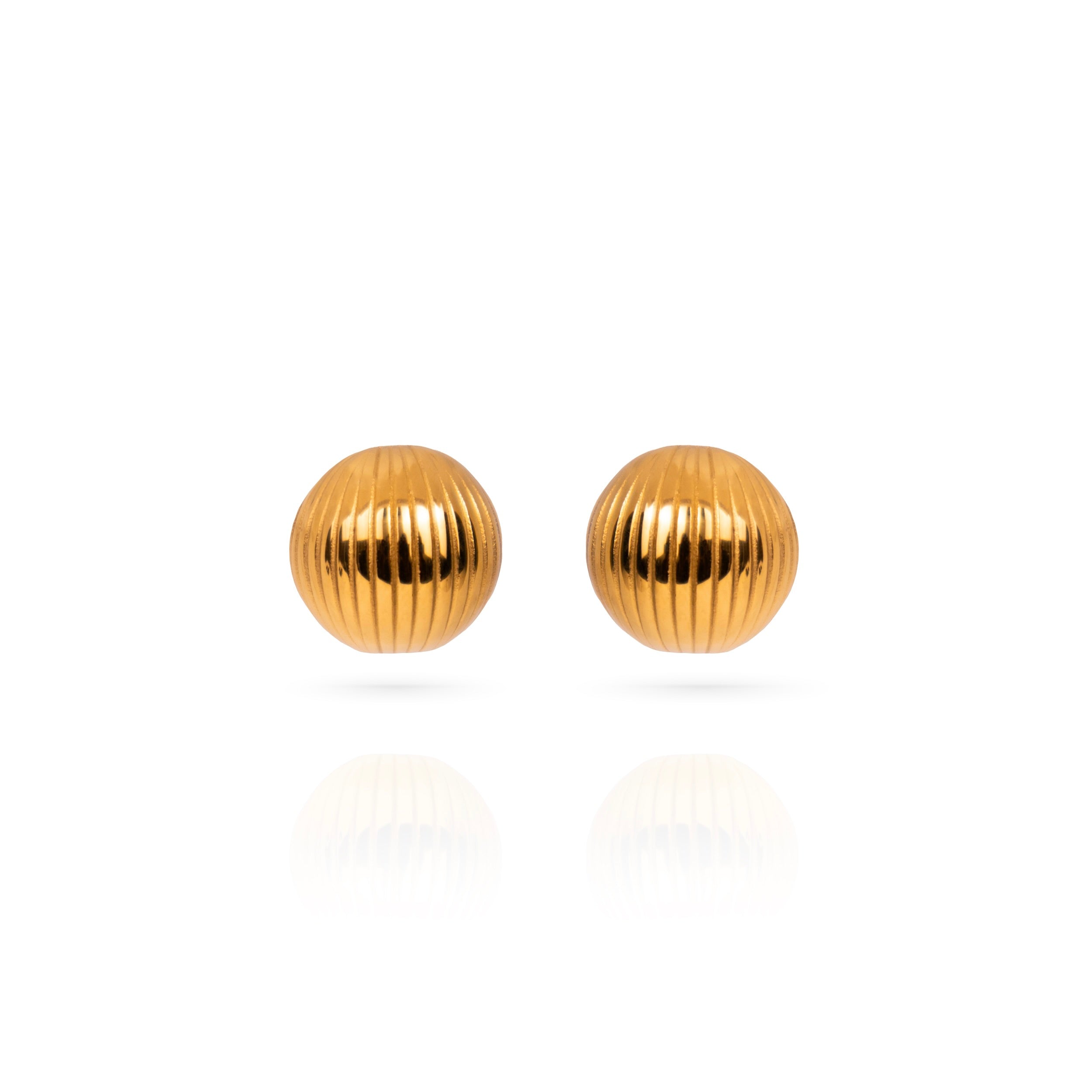 MEET GISELLE - A BOLD AND STYLISH DOME-SHAPED DESIGN WITH A RIBBED TEXTURE, RESEMBLING SOFT, FLOWING RIDGES. MADE IN A LUXURIOUS GOLD TONE, THESE STUDS CAPTURE A SOPHISTICATED YET STATEMENT-MAKING AESTHETIC